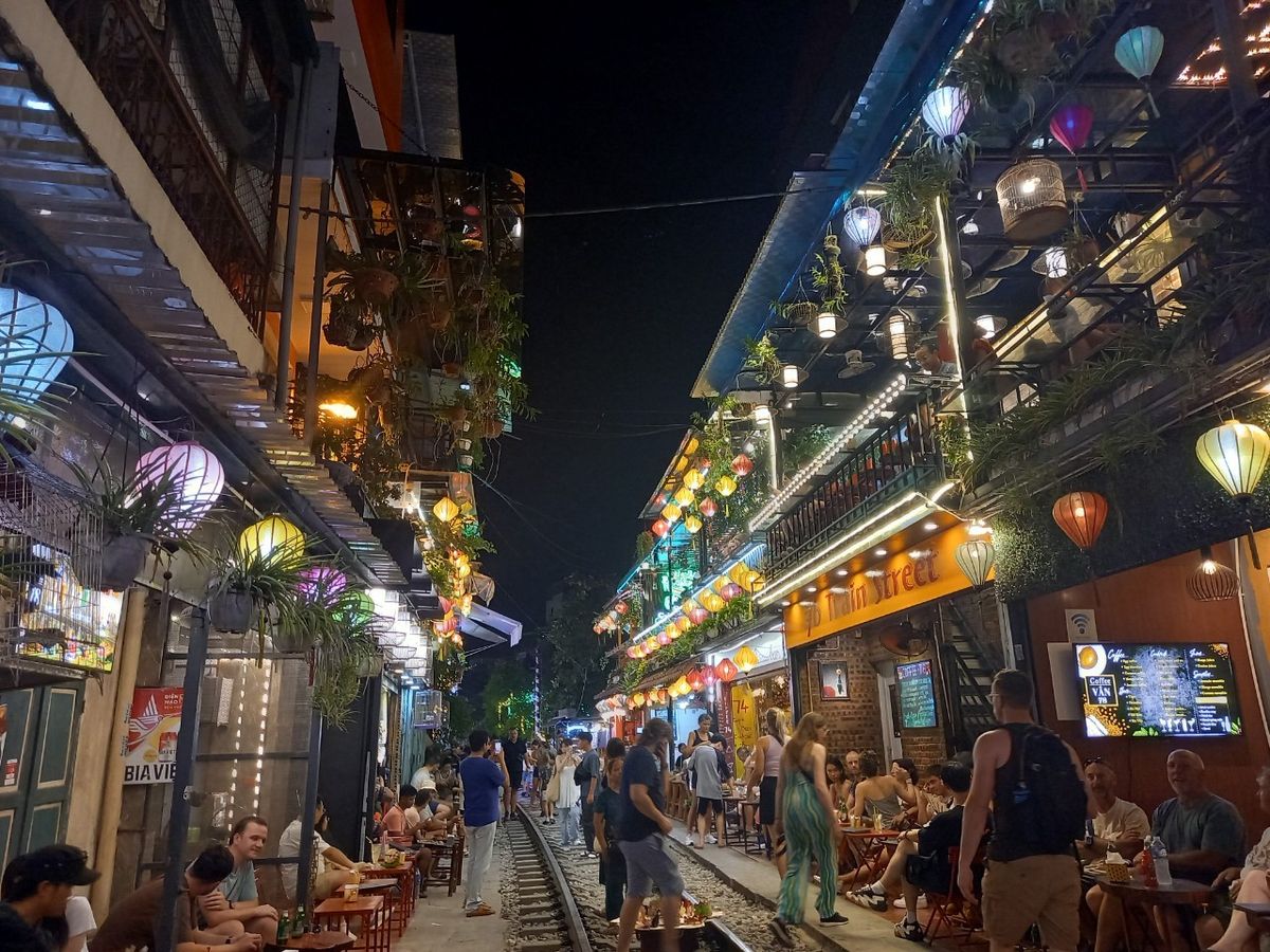 こんなに満たされたナイトツアーは滅多にないと思います!最高でした!女2人旅で、夜に不安なくアクティブに動きたくて、到着翌日参加。この日は私達だけで、ホテルまで送迎ありでした。ツアーは、まずミシュラン店での夕食のブンチャーが食べきれないほど。ガイドさんが食材の説明をしながら、鍋をどんどん作り足してくれて沢山食べられました!その後のトレインストリートへは徒歩移動でしたが、現地の暮らしを色々話しながら歩いてくれて、とても楽しかった。トレインストリートでは時間にゆとりがあり、エッグコーヒーを飲んだり、店主からフルーツをサービスしてもらったり、ゆっくりできました。何より列車通過時の迫力、群衆の盛り上がりと一体感はハンパない!最高でした!自力だとなかなか夜の列車走行に時間を合わせて動くのは難しかったので、有り難かったです。続いてシクロで旧市街を散策。バイクと車が入り組んで走るハノイ。夜なお活気のある商店の人々。車窓ではなく、肌で街の匂いや温度を感じられて、とても良かった!そしてこのツアーは週末限定催行のナイトマーケット散策が最後についています。広場にテントが立ち並び、大勢の人々が行き交う、活気のある市場でした。ガイドさんが一緒に回ってくれるので安心して動けました。終わりに、これまで各国旅をしてきた私ですが、今回日本語ガイドのGiangさんが本当に親切で感激しました!フレンドリーで地元のことやご自分のことを気さくに話してくれたことはもちろん、やや体調を崩してた私のケアもバッチリしてくれて感謝の一言です!有難う‼️忘れられない旅になりました。