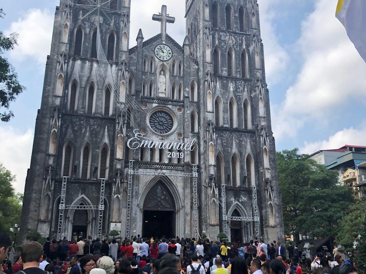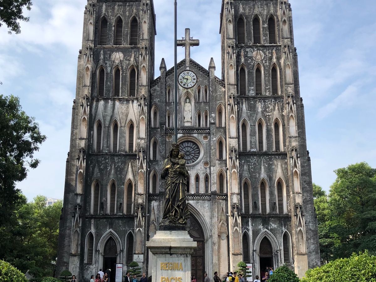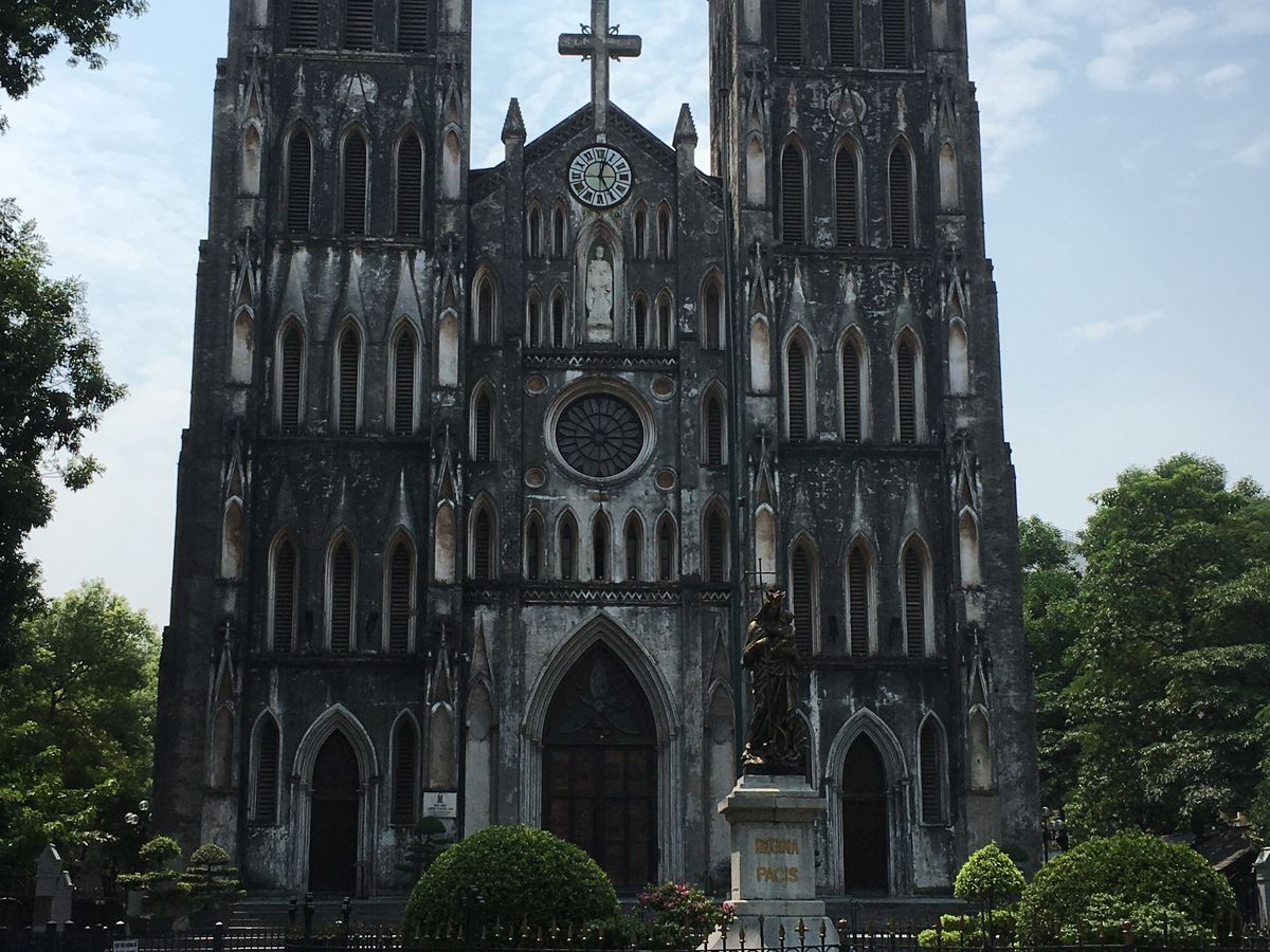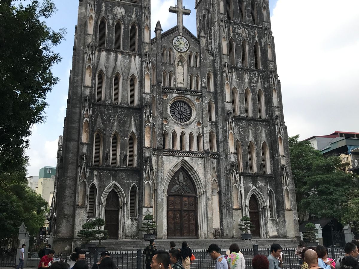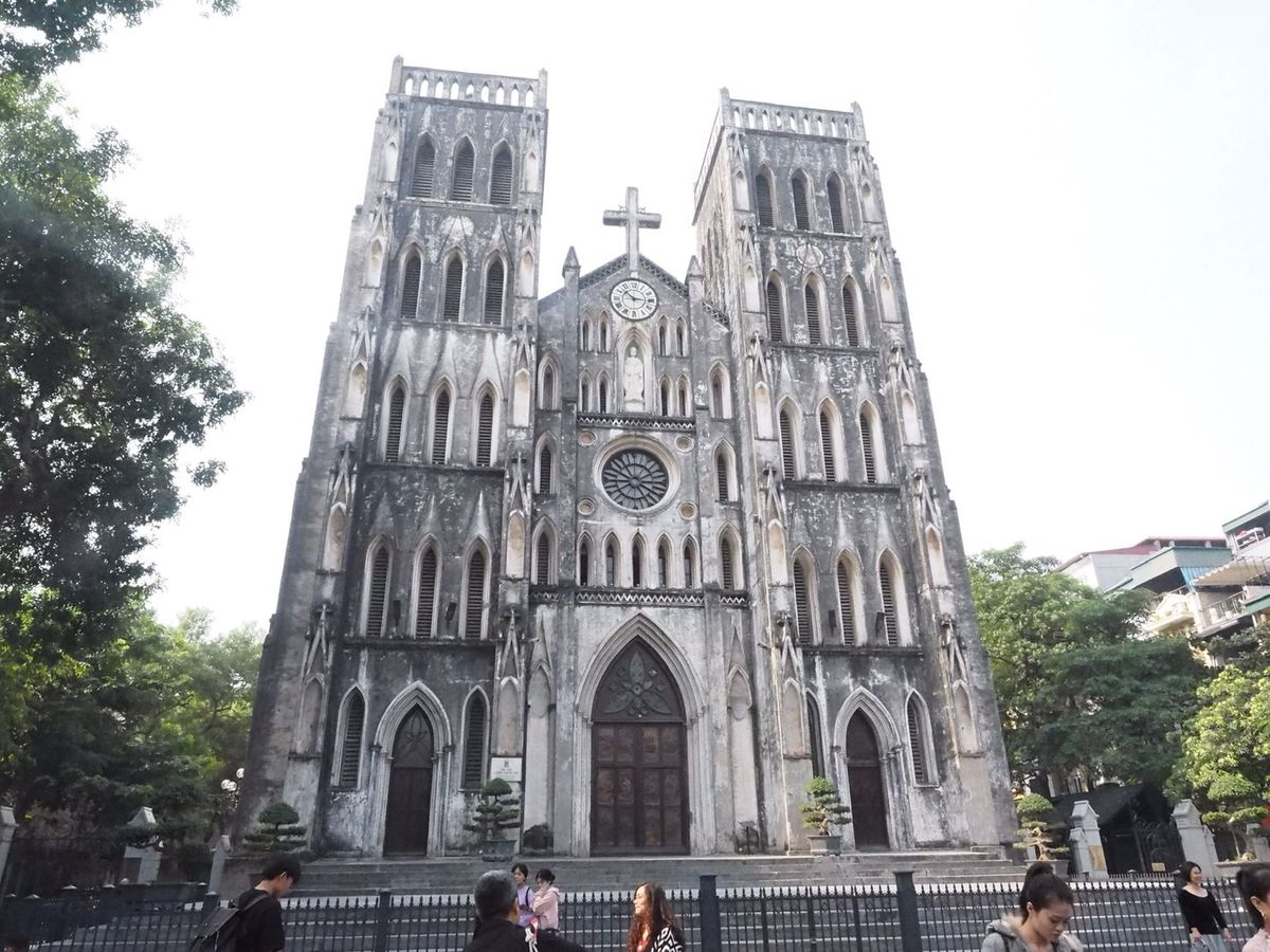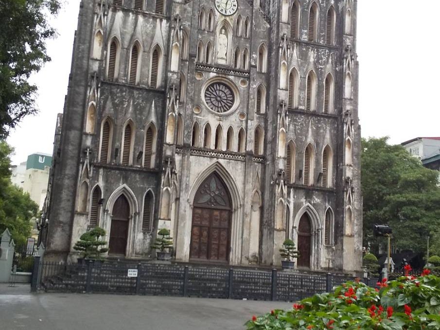 ホアンキエム湖からハノイ大教会は歩いてすぐで仏教の国とは思えない建物でした。