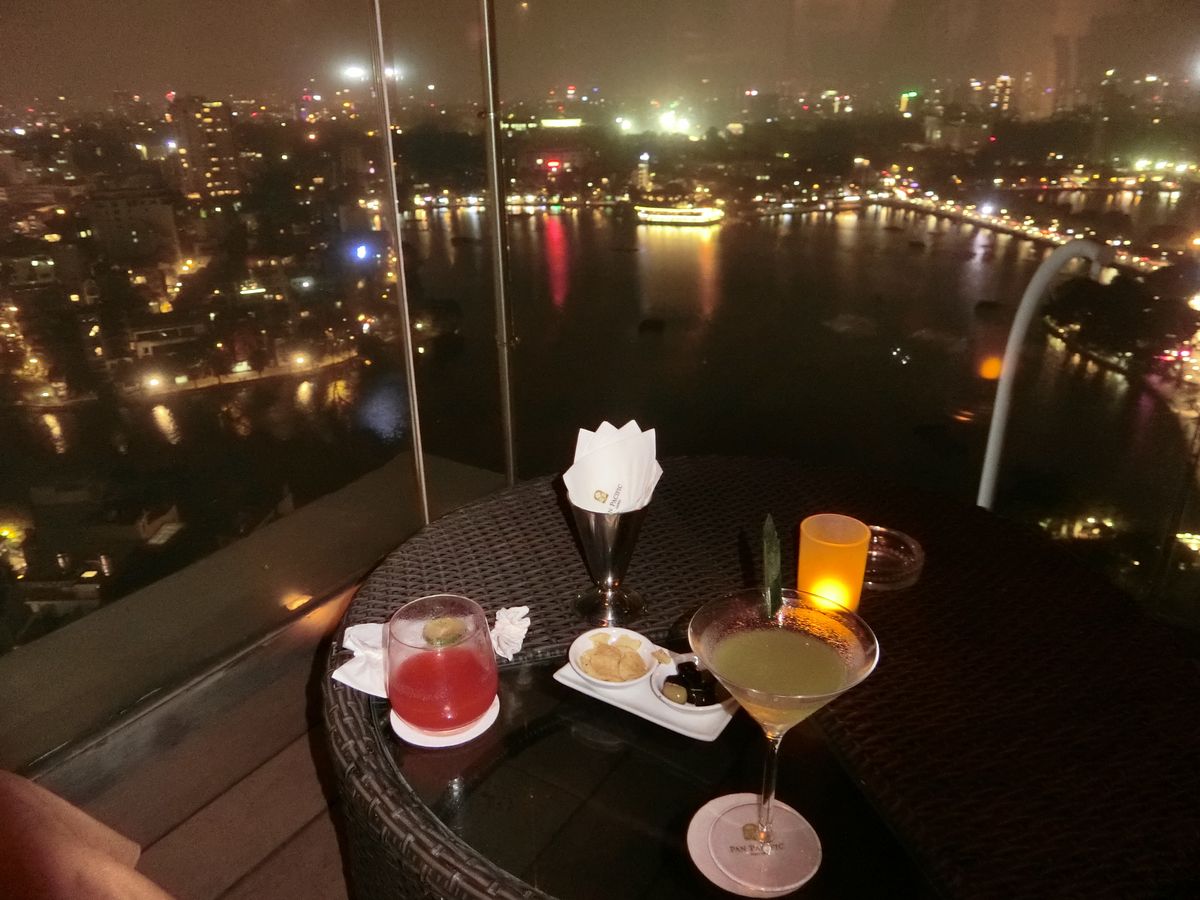 最後のパンパシフィックホテルのルーフトップバー!午後からの雨もやみ、美しい西湖の夜景が一望できます。