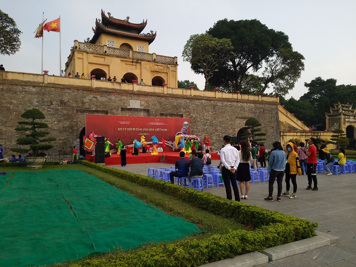 その後、タンロン遺跡に行きましたが、音楽フェスティバルの準備で入り口が1つ塞がれていたため、ガイドさんが「今日はここは見れません」って引き返そうとしました。