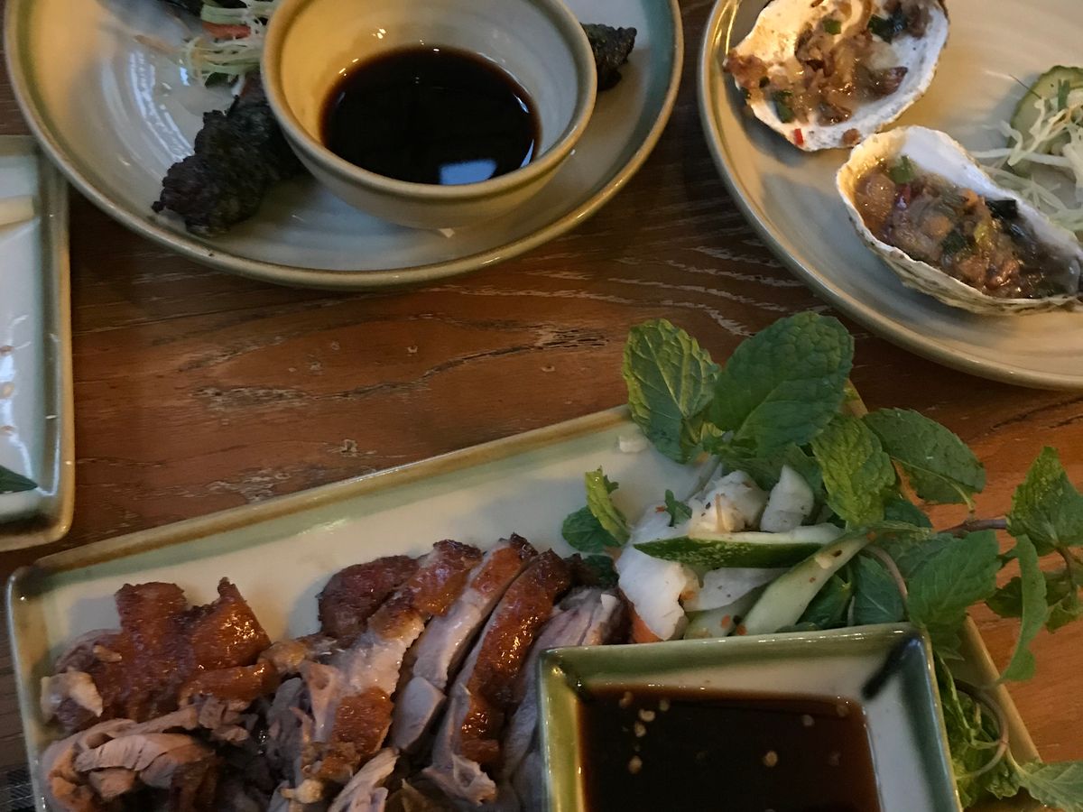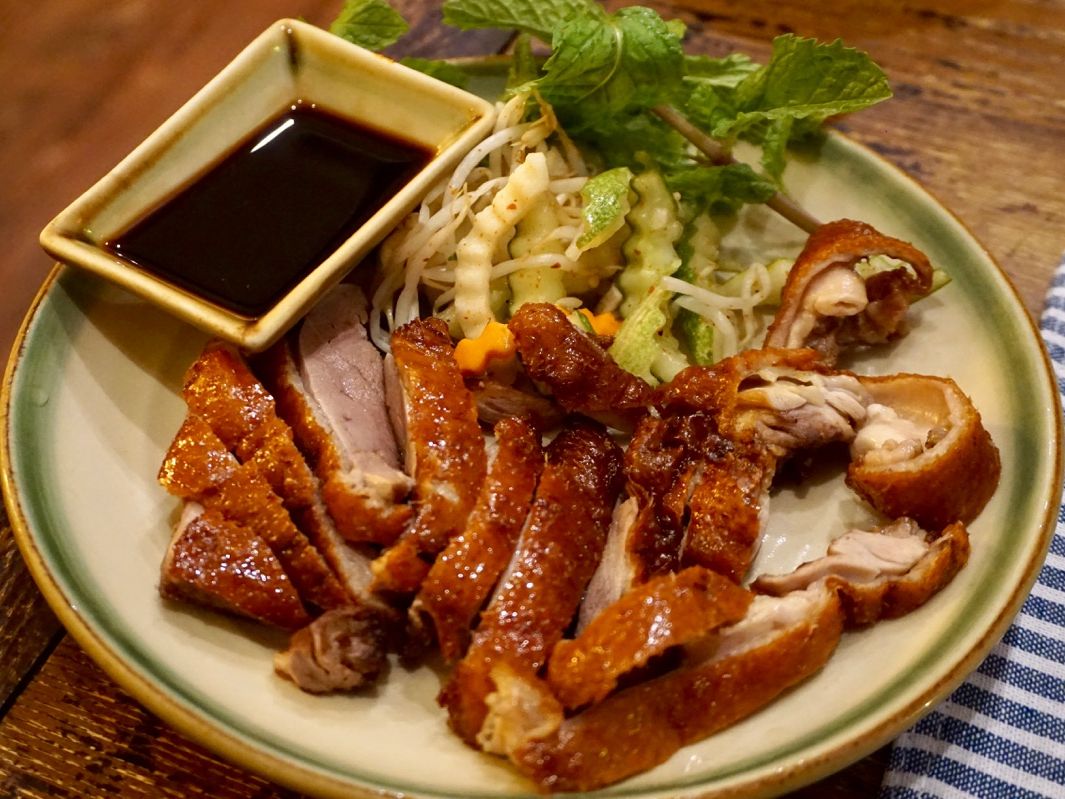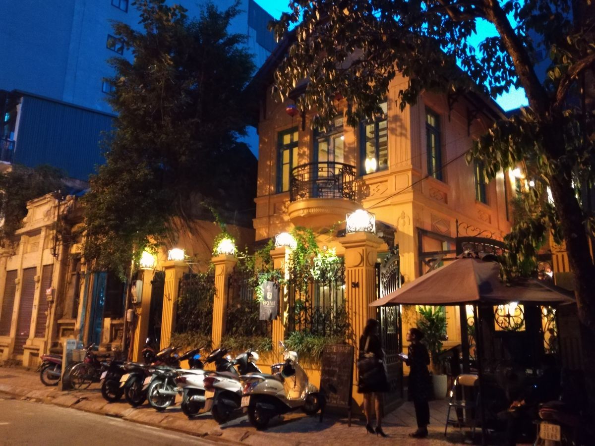 最後はHome Ha Noi Restaurantでの夕食です。歴史ある民家を改装したようなお洒落な建物で、夕暮れ時の街灯に黄色く浮かび上がる外観はとてもロマンチックです。コース料理のメニューは、海老とキノコのスープ、つみれの揚げ物、パパイヤのサラダ、北京ダック、揚げ豆腐のトマト煮、空芯菜の炒めもの、牡蠣のグリル、アサリのスープ、白飯、フルーツデザートと盛りだくさんで、どれもとても美味しくお腹がいっぱいになりました。また、お店の女性スタッフの接客も丁寧でした。