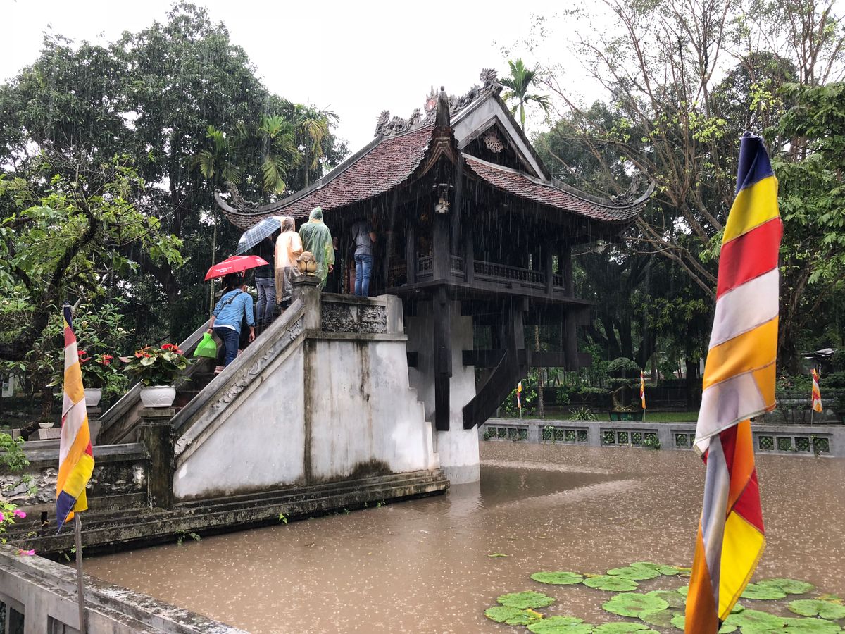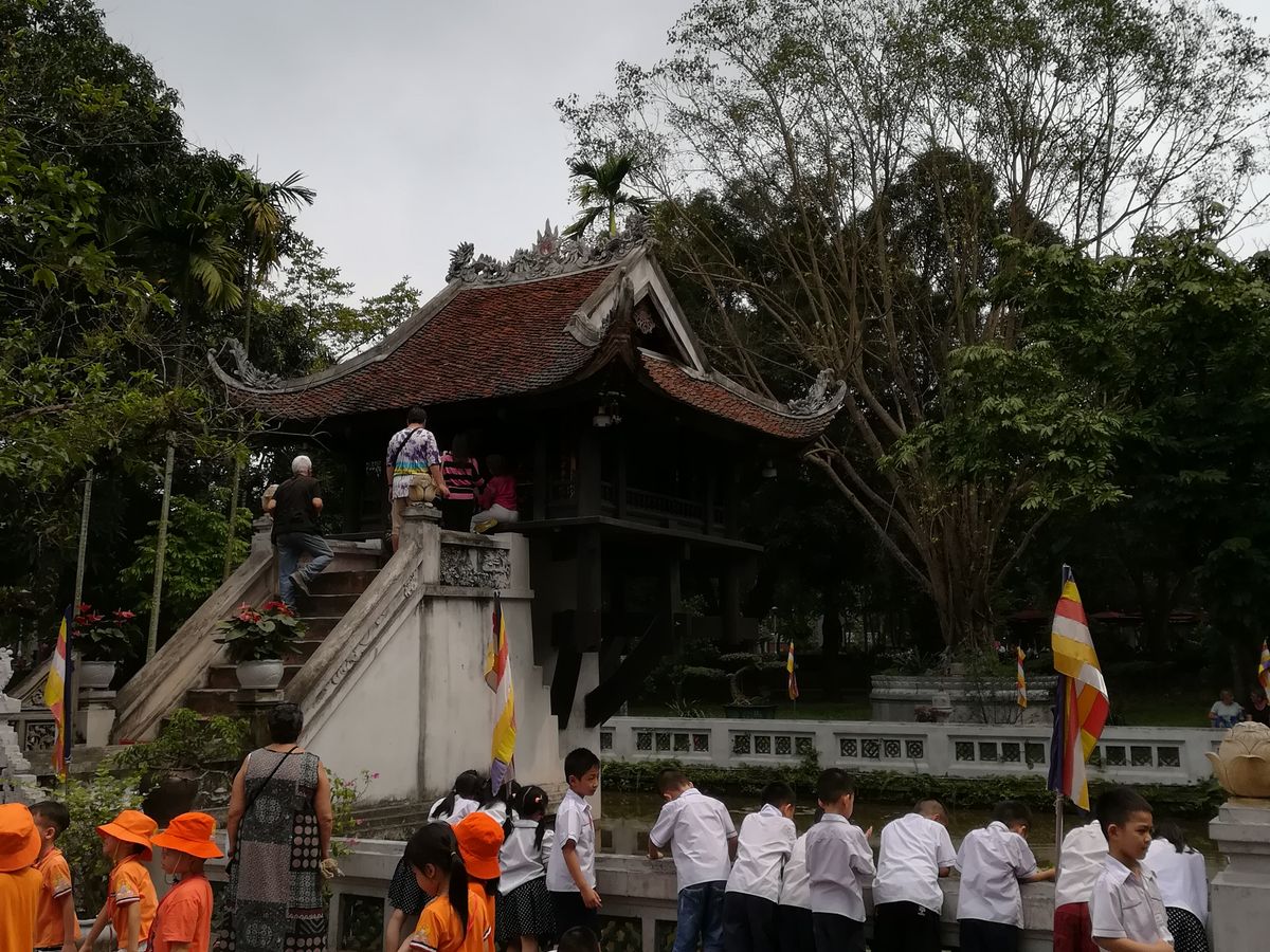 予定ではホーチミン廟、ホーチミンの家に行くことになっていましたが、ベトナムの夏休み期間中の日曜日のため、ホーチミン廟の周りには大行列ができており、残念ながらこれらを見るのを諦めてドンスアン市場~一柱寺~バッチャン村~文廟と回ることになりました。