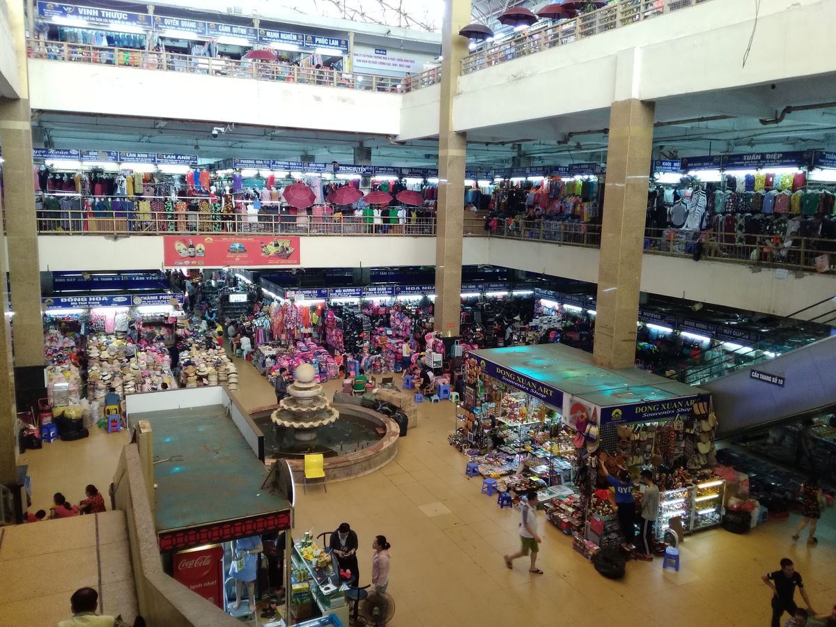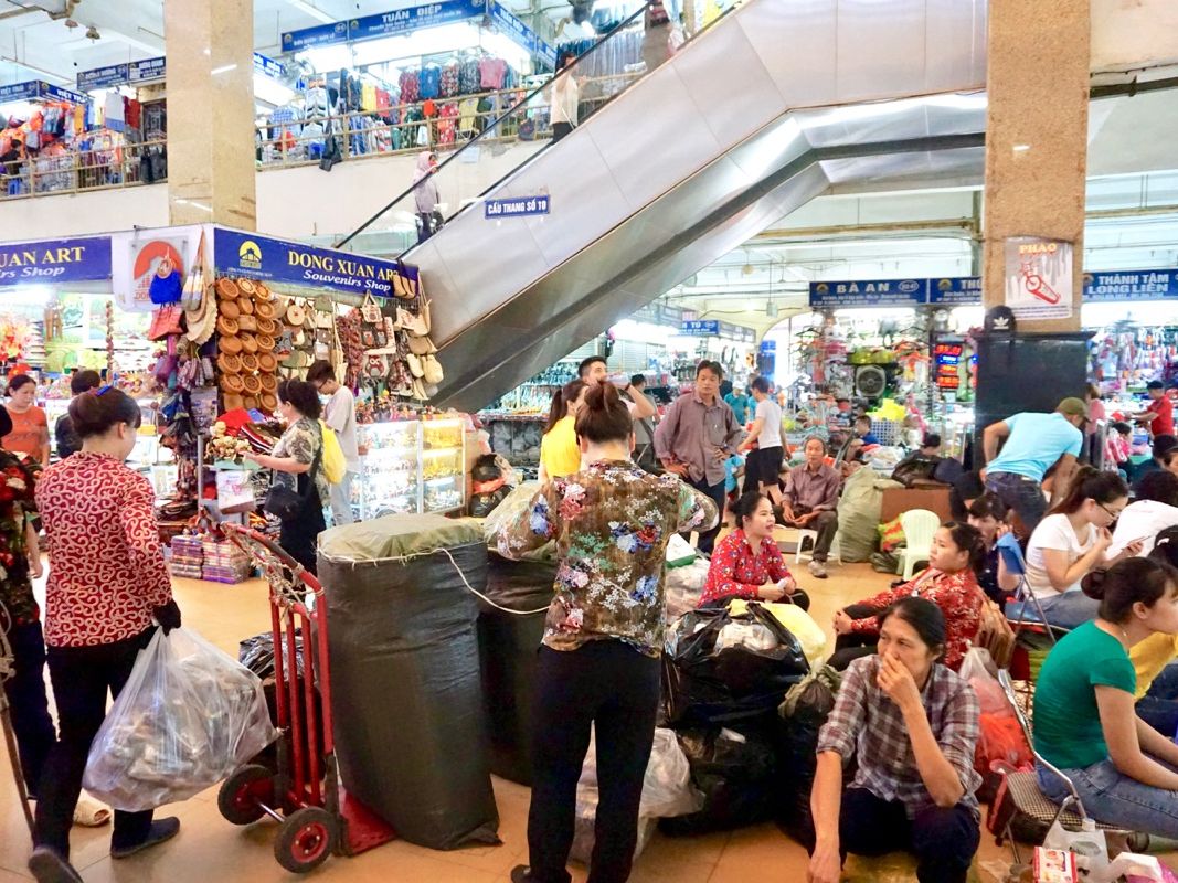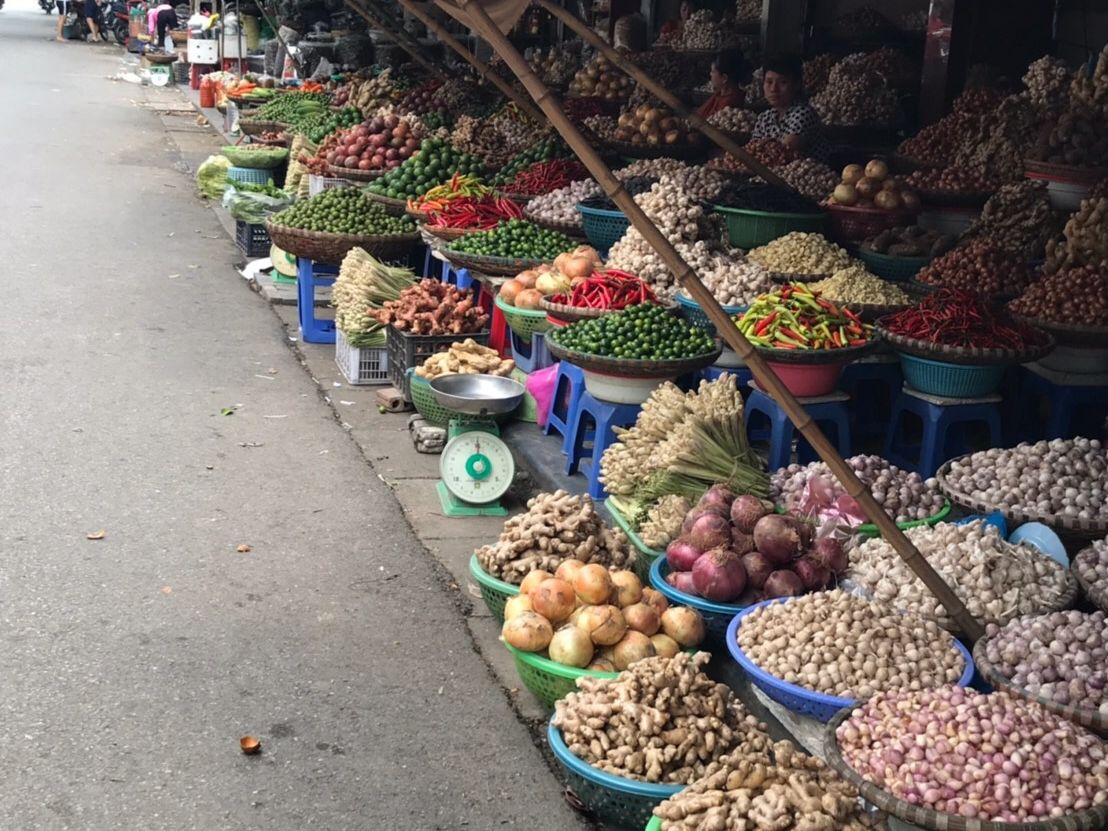 はじめに向かったのは「ホーチミン廟」。朝7:00〜10:30までしか入れないとのことでしたが、少し早めにバカンスに入ったらしい子供たちでいっぱい。2時間近く並ばなければいけないとのことで(列に並んでも10:30には間に合わないので)中に入るのは諦めることに。後で外観だけ見に戻ろうということになり、「ドンスアン市場」へと向かいました。