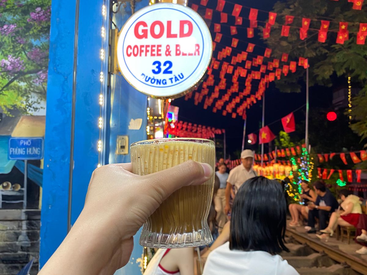 その後はトレインストリートへ行き、エッグコーヒーを飲みながら電車が来るのを待ちます。動画で何度も見た光景を目の当たりにして、とても感動しました。