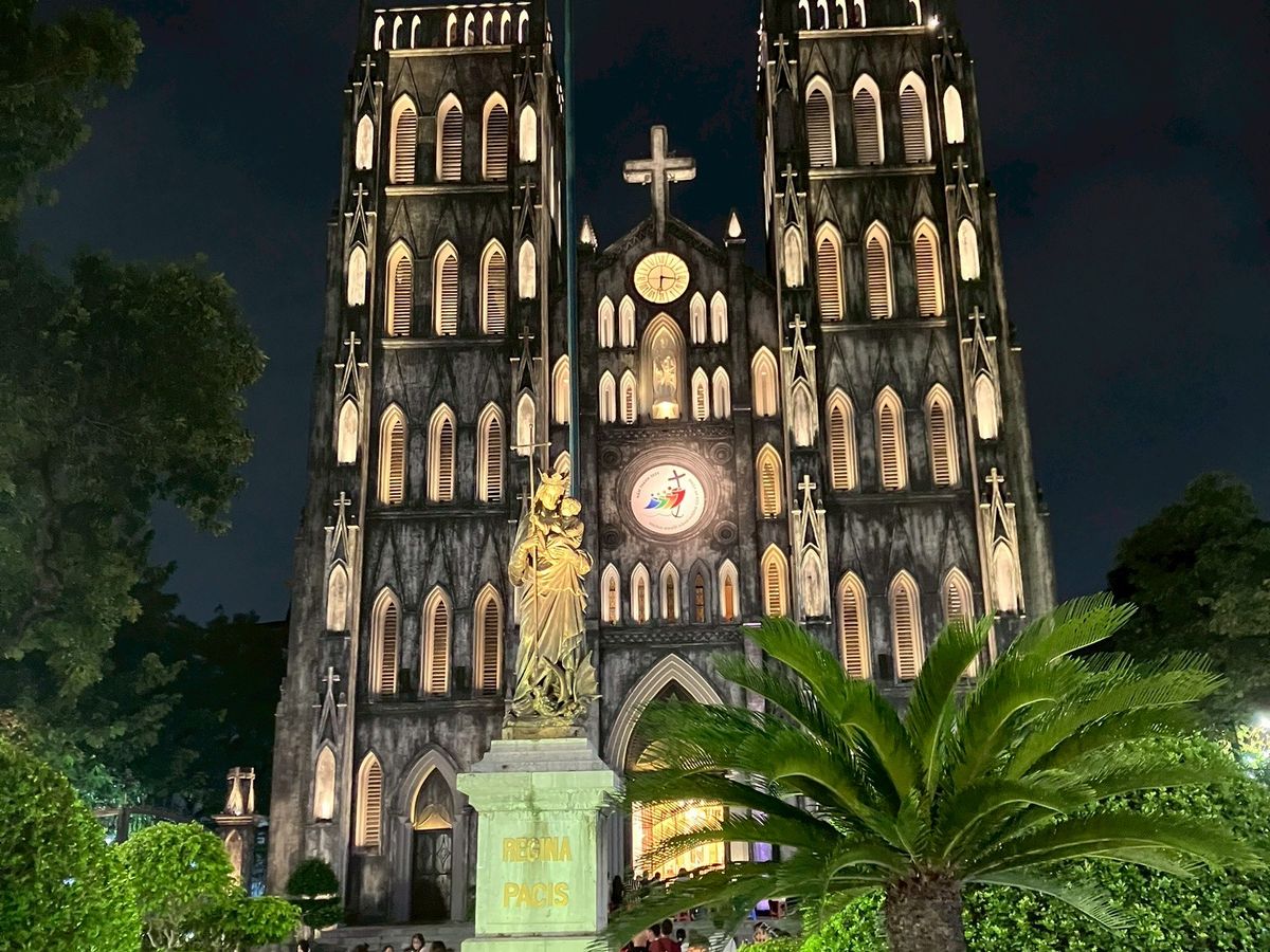 飛行機が遅延し、お願いして1時間遅くの18時に変更してもらえました。その分18時半からの水上劇までに、ホテルにガイドさんとシクロの運転手さんでお迎えにきてもらい、町を見てまわり、遅くになった分暗くてライトアップされた大聖堂を見て中はミサでしたし、そもそも後ろにスタートしたので、湖はそこそこに水上劇に滑りこめました。席は真ん中で舞台の生演奏も良く見えました。ガイドのダンさんは、フットワーク軽く、温かくて親切で、よく気がつき助かりました。観劇後は真っ暗でライトアップされた湖の景観を見て、ブンチャのお店に行きました。甘過ぎず、つけ麺感覚でつくねに似た串を頬張り交互につけ麺を食べました。日本人の味覚に合うと思います。フォーはわりと食べてましたからよかったです。日曜日はナイトマーケットが開催されており、寄り道したかったので、ダンさんにホテルまでの詳しい帰りかたを聞いて、ツアーはここで終わりました。もちろん、ダンさんに食事後にホテルに送っていただくことも可能です。私たちは宿が歩いて帰れたし、ハノイの夜は他国より、安心な印象でしたから。