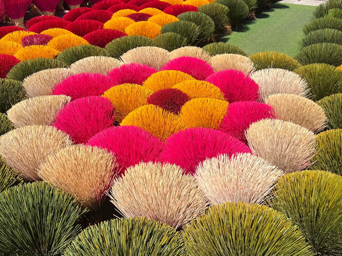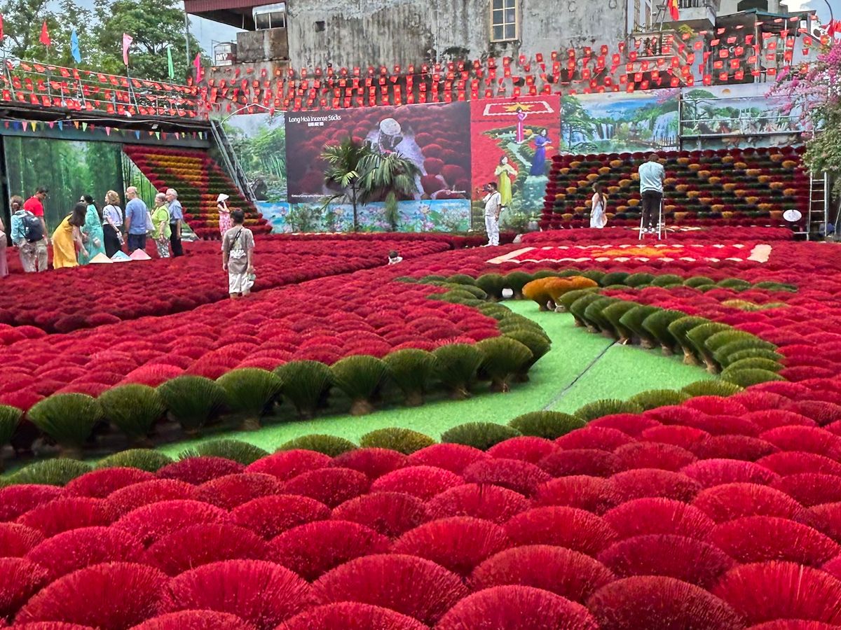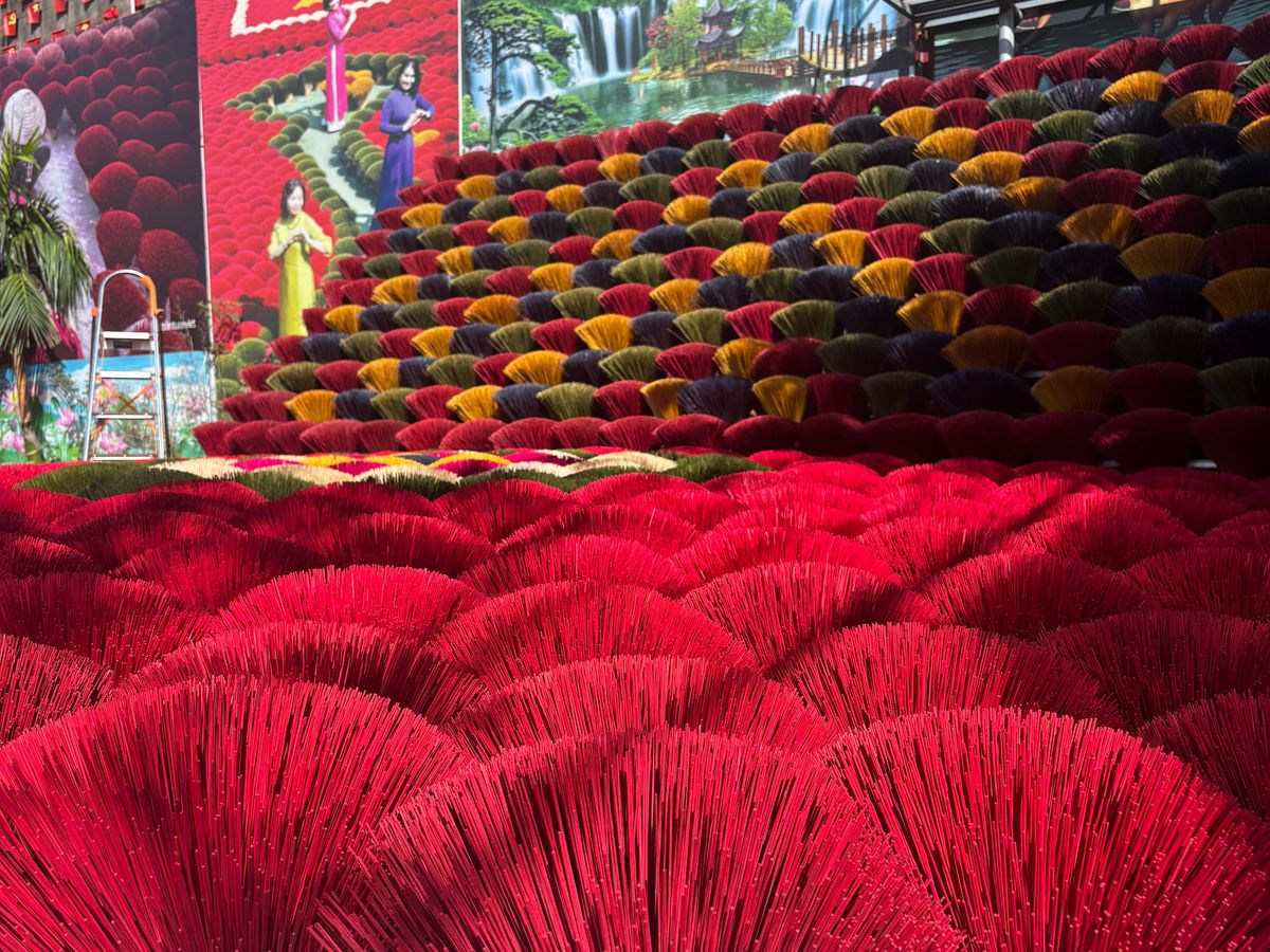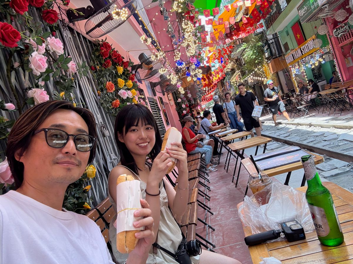 ガイドさんには9:30にホテルに迎えにきていただきました。朝の渋滞のピークを過ぎていたからか、移動がスムーズで10時くらいにはヴァンフックシルク村へ。村と言っても政府に強制移動させられてハノイ市内にあります。ガイドさんにはとても丁寧にシルク村の歴史やシルクの生産方法などを伺うことができました。何よりここは写真映えしますね。その後クアン・フー・カウ線香村へ。11:30くらいには到着してガイドさんから線香の制作方法を伺い、実際に少し体験もさせていただきました。またたくさん写真も撮っていただき大満足。その後ハノイに戻り、バインミーをローカルなお店で購入して、13時くらいにトレインストリートへ。カフェでビールを飲みつつバインミーをいただきました。ホテルに戻ったのは14時くらい。とても効率的にかつ映える写真をたくさん撮ることができたので大満足です。