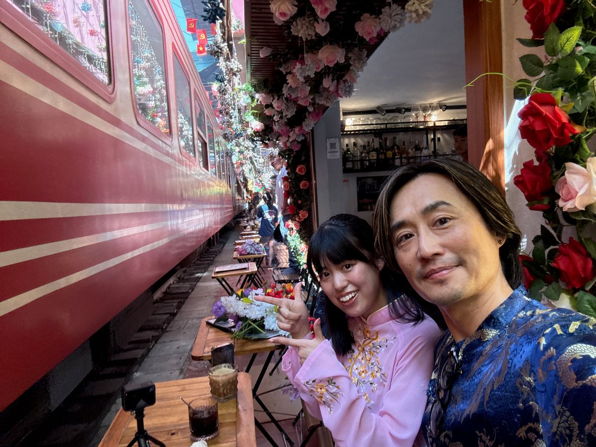 ガイドさんには8:30にホテルに迎えに来ていただきました。まずはアオザイのレンタルショップに行ってお気に入りのアオザイを選びます。ショップの方も日本語ができるので安心。その後トレインストリートに行ってエッグコーヒーを飲みながら電車の通過を体験。本当に目の前を通過してくので大迫力です。そこから徒歩でフンフン通りへ。映える写真をガイドさんにたくさん撮っていただきました。そのままロンビエン橋まで徒歩で移動。ここでもたくさん写真を撮り、ここで車に戻ります。そして大聖堂近くにあるマロゥでアイスクリームを頼みつつ休憩。そのあとは大聖堂で写真を撮っていただき、最後に車でオペラハウスに移動してまたまた写真。ホテルに戻ったのは12時過ぎでした。