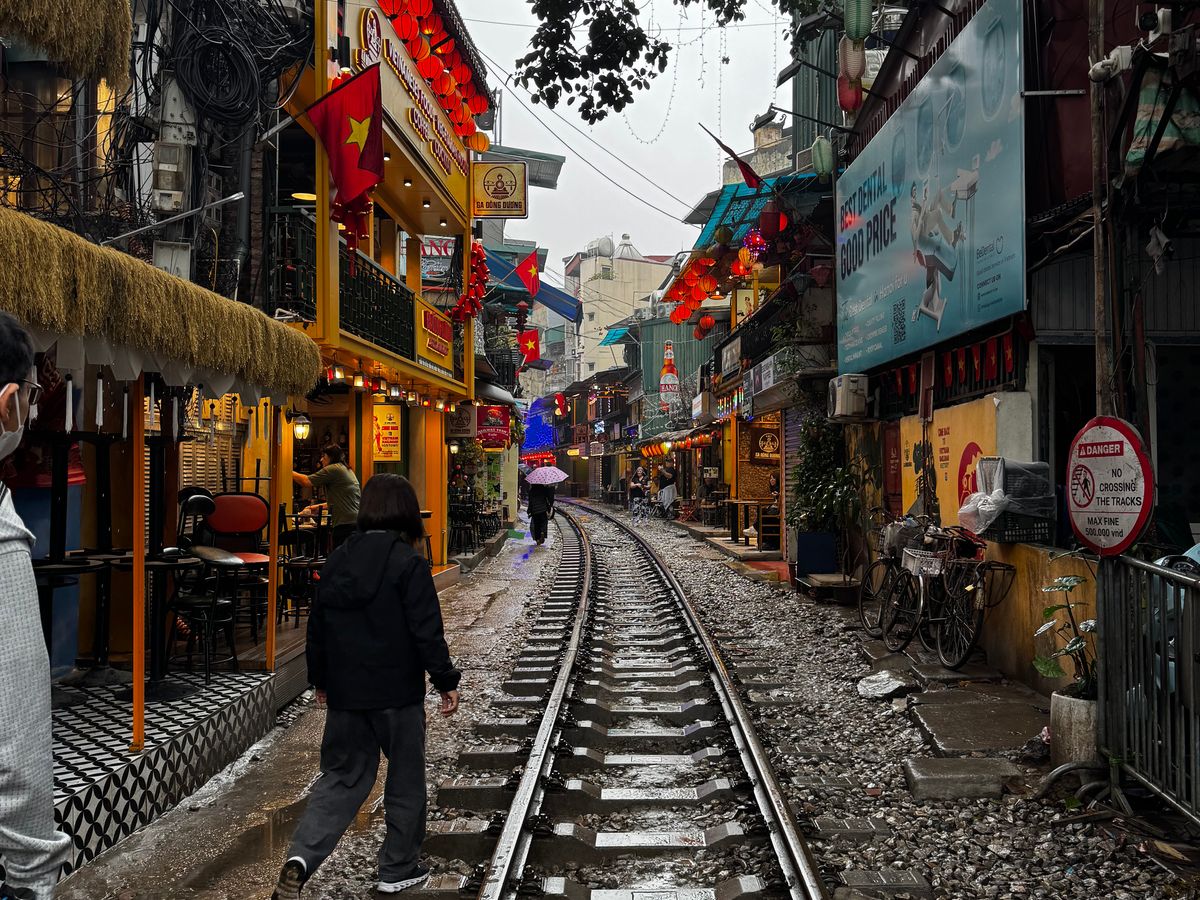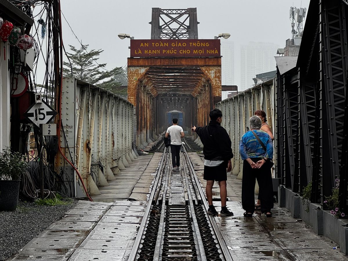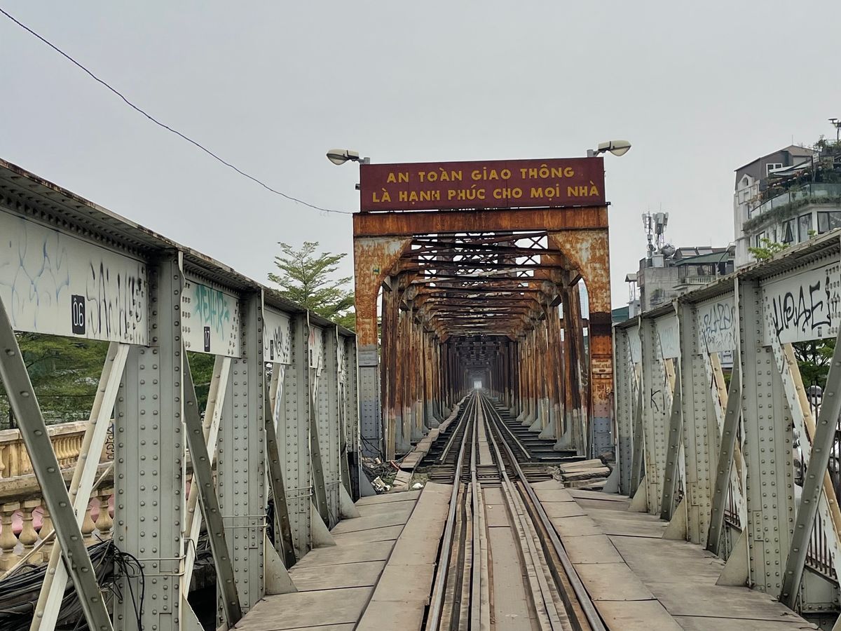 ※残念ながらトレインストリートの取締が厳しくなったタイミングだったようで、線路には入れずカフェ2階から列車を見るだけでしたが、代わりにロンビエン橋まで連れていってもらいました。