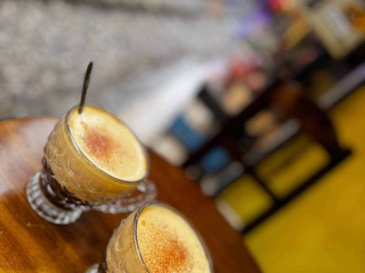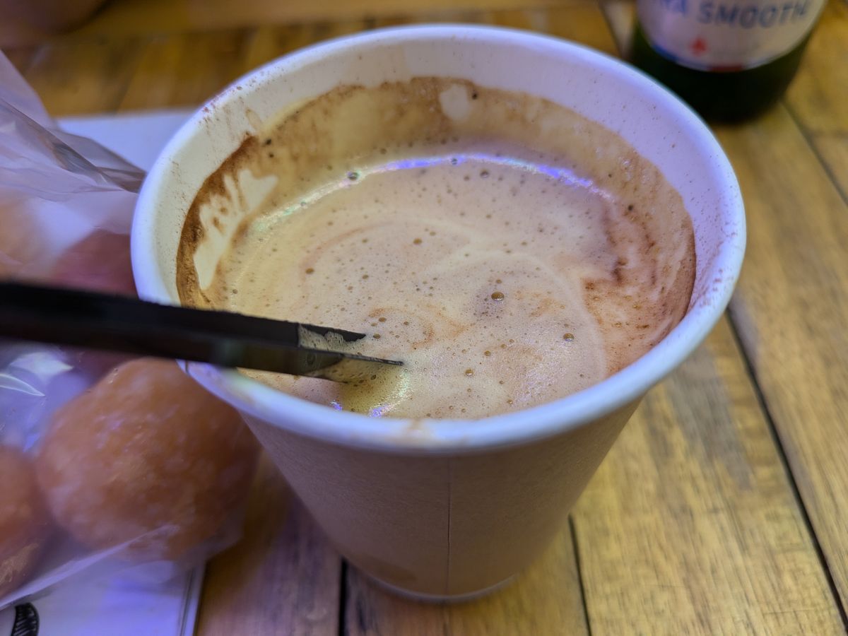 エッグコーヒー(代金はツアー代に含まれていました)を飲みながら、写真を撮って待ちます。