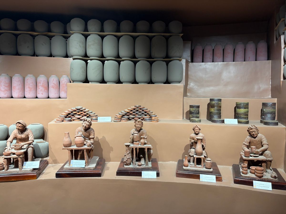 陶器が大好きなので今回参加しました。バッチャン村、博物館、昔使っていた釜、イオンモール、最後に専門店(ハスのお茶やジャコネココーヒーなど売っているところ)を寄るコースでした。博物館は小さいですが、いろいろな陶器があったので、もう少しじっくりみたかったです。ガイドさんが解説してくれます。バッチャン焼きの市場は偽物や中国製が多いということからオバマや天皇も訪れた店兼工房?で買い物をしました。ベトナムの果物とお茶もいただきました。イオンモールの買い物は時間が押していたのか30分程度しか見れませんでしたが、イオンの無印に500円くらいのベトナムの絵が描いてあるかわいいキャンパスバッグが売っていておすすめです!参加時は4名しかおらず、融通がききやすかったのか、最後専門店の方でハスの実入りのチョコレートを買いました。ここでもお茶やジャコネココーヒーを試飲させてもらいました。陶器も専門店も「これはどう?」「5つでサービス」など言って店員さんがピッタリくっついてくる接客なので苦手な人は断りづらくてたくさん買ってしまうかもしれません。断ってもしつこく押し売りしてくる感じは無いので、苦手な人は必要な分だけ買って断りましょう。