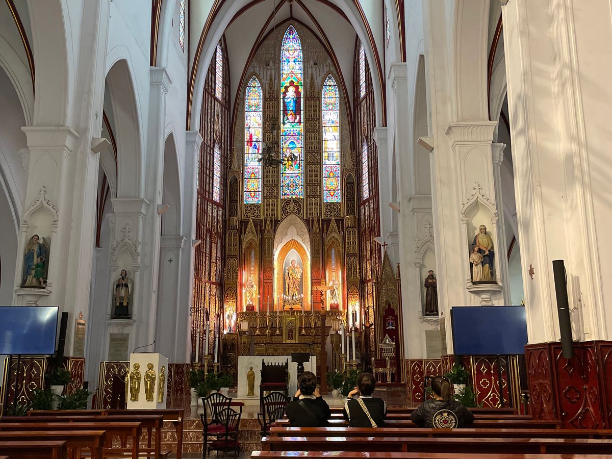 ハノイ大聖堂は日曜日のミサのため入場はできませんでしたが、建物の正面はたくさん写真が撮れました。