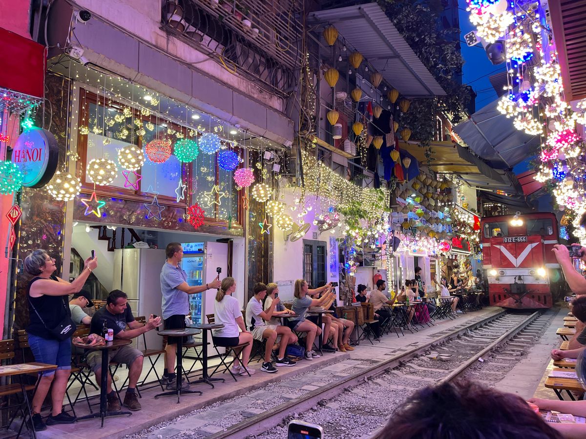 期待以上のツアーでした。通過する電車は日本の路面電車くらいのものかと思っていたら、何両もある長い電車で通過に1分近くかかります。線路の両側にある飲食店を予約してくれており最前列で見る事が出来ますました。これは自分ではできないのでツアーに参加して良かったです。ハノイの特別な夜の体験には、おすすめです。