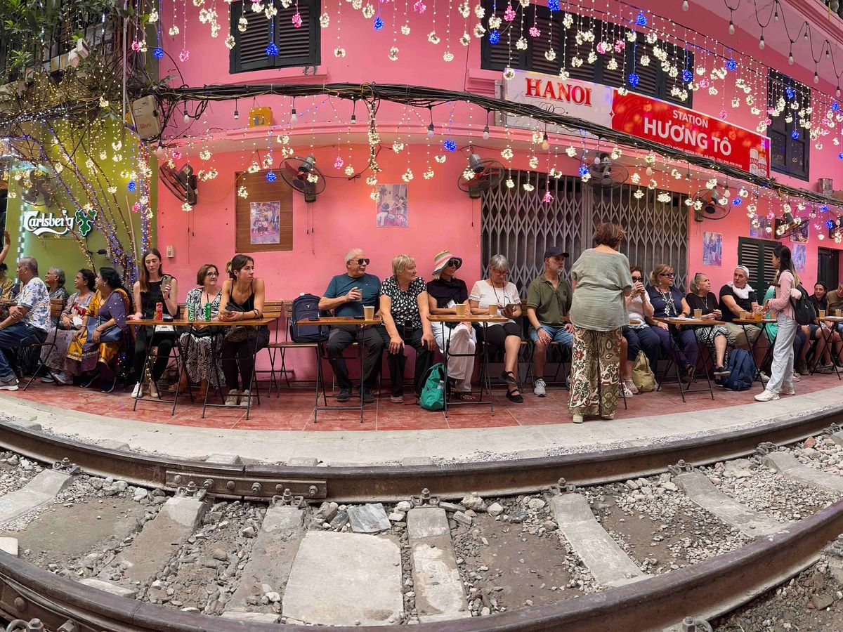 少人数に対してガイドさんが、近い距離にいて街歩きをできるので、安心しながら自分達だけでは行けないできない経験をできました。写真も撮って貰えるし、アオザイを着て、名所を巡り歩くのは、良い思い出になります。名物の列車が通る所では、横にあるカフェでの飲み物代も、料金に含まれていました。名物のエッグコーヒーも、あのロケーションで飲むと格別でした。