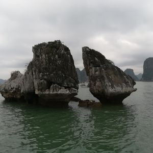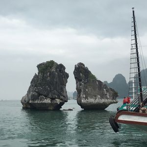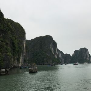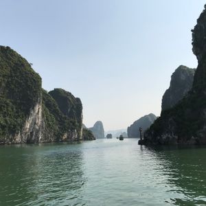 ハロン湾のクルーズでは景観の雄大さに目を奪われ、これぞ世界遺産と言わんばかりの迫力でした。船の上階から見ることができた、数多の奇岩の間をすり抜けて湾奥に向かう眺めは、映画のワンシーンさながらで、某海賊映画のテーマを口ずさんでしまいました。鍾乳洞も規模が大きく、神秘的な光景を目の当たりにすることができました。なかでも、天気と太陽の角度の条件が合わないと見ることができないHeaven's Gateは圧巻。クルーズ中は快晴とはいかなかったものの、青空が見え隠れする良好な天気で、母の中に住まう雨女が息をひそめていてくれて助かりました。ピーカン照りだと、屋根のない船の上階には暑くてあまり居られなかったかも。3時間もクルーズするのは長いのではないかと言っていた自分を戒めたくなるくらいには、あっという間で大満足の3時間でした。