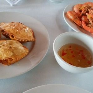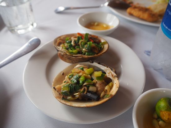 船上のシーフード料理は可もなく不可もなくという印象。味は薄め。別の船で漁師らしき人がシャコ、ハマグリ、ワタリガニを売りに来るので、それを買えば、クルーズ船のキッチンで調理してくれます。湾内は波がほぼないため、船酔いの心配は無し。