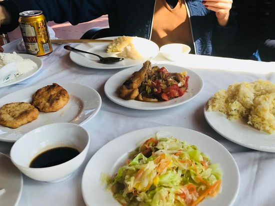 その後、トイレ休憩をはさみながら3時間ほどかけてハロン湾に到着。チケットの手配から乗船まで全て会社が手配してくれているのでスムーズでした。船内での食事は海鮮がメインで、窓からハロン湾の眺めを楽しみながらとても美味しくいただけました。自由にデッキへ出て写真も撮れるので、食べて外へ出て、また食べて…といった具合。この日は生憎の曇りでしたが、思ったより見晴らしもよく、満足できる景色でした。