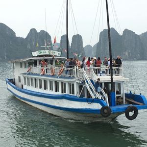 日帰りの世界遺産ハロン湾クルーズに参加しました。片道4時間バスに乗るのは多少不安でしたが、大きなバスで座席のクッション性も良く、途中でトイレ休憩もあったので快適な工程でした。バスの中でフリーWIFIもサクサク繋がりますよ。ハロン湾でのボートは主催会社の日本人客30人程度だけでしたので、お互い写真を撮ったりほのぼのした感じ。ハロン湾は規模が大きく写真で見るより実際は圧倒され、3時間のクルーズでも私は十分堪能しました。これはやはりその場に行かないと見られない感動だと思います。