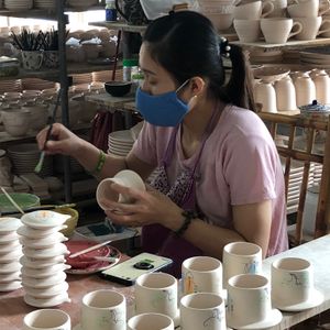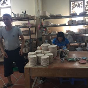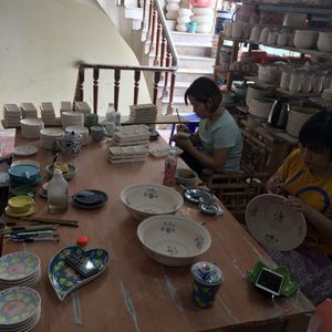 まず、最初にバッチャン村へ。ここでは絵付けや製造工程の説明を受けることができ、勉強になりました。ここのお店での購入は通常のお店より少々高いんだろうなーと予想してましたが、詳しく説明してもらったし、絵付けや製造など作業をしているところを間近に見ることができたので、買っても良いかなと思い、友人と一つずつ購入しました。