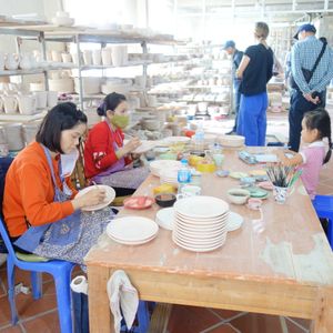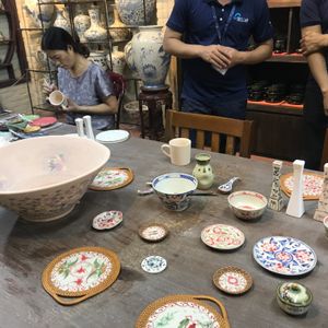 村というより商店街という感じでしょうか。バッチャン焼について説明を受けたあと、30分ほど買い物できます。カードや日本円も使用可です。楽しみにしていたのですが、値段が安くはないと感じたのと、派手なデザインの商品が店中に大量に積み上げられているその雰囲気に圧倒されてか、何も買えずに終わりました。基本的にはバッチャン・コンサーベーション?といういかにも観光客用の店一つしか見られないのですが、個人的に外に出て、集合時間になるまで他の店も見回っていました。