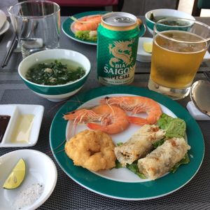 変にすっぱいとか甘いとかがなく、パクチー無しなのが個人的には良かったです。食べきれないほどの量でした。米に関しては、やはり日本で食べるものの方がおいしいと感じました。ドリンクは水も含めて別料金です。アルコールもあります。私は茶と炭酸を頼んで、8万ドン(約400円)でした。細かい現金の準備が必要です。