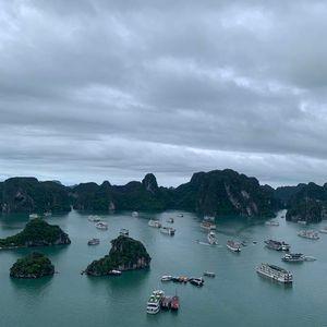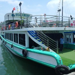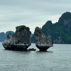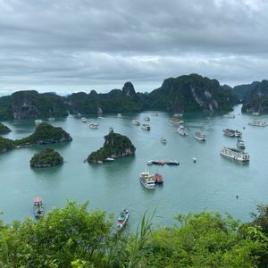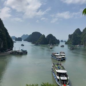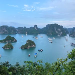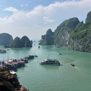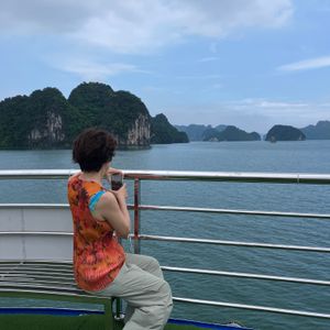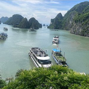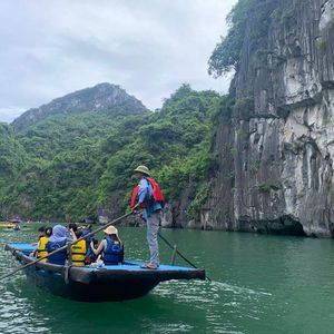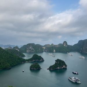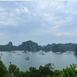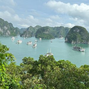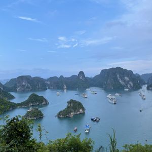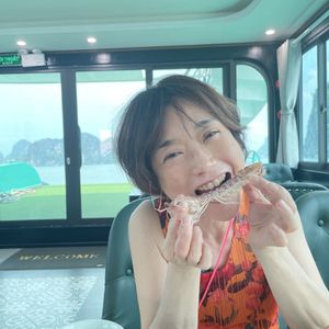 バス、高速船も快適で食事も美味しかったです。船での食事はハロン湾で取れたエビやイカなどの食材を堪能することができました。ガイドさんも、とても親切で日本語も堪能で説明もわかりやすかったです。雨季でしたが天気に恵まれてあこがれのハロン湾の絶景を見ることができました。特にティートップ島頂上からの眺めは最高です!400段の階段も登山が趣味の私たちにとっては、全く問題ありませんでした。全てにおいて大満足のツアーでした。