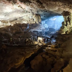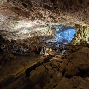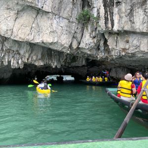 コースの1番の見どころ、スンソット洞窟です。入口は、とんでもない人混みですが、少し進むと壮大な景色が広がります。これは、素晴らしい!感動しました。カヌーや、手漕ぎボートは、管理された専用の湾内エリアで30分ていど回る感じで、特別美しい海でもないので、ちょっと残念な感じ。クルーズの食事は、それなり。日本人向けにボリュームを減らしてる感じかもしれません。夕食は、ドライブインのフォーでした。食事に過度な期待はしない方が、良いと思います。ツアーの最大の特徴は、日本人向けに最適化されていることだと思います。ガイドさんは、言葉や気遣いは完璧で、一般的な日本人が求めるところを把握されてるように思いました。旅慣れてない方も安心して参加出来ると思います。