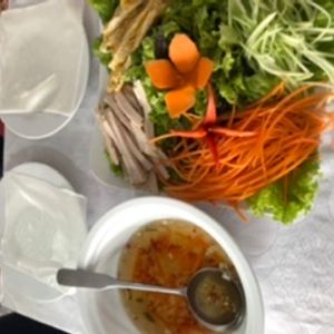 船に戻り フルーツとビスケット、飲み物のサービスと春巻きの料理教室がありました。