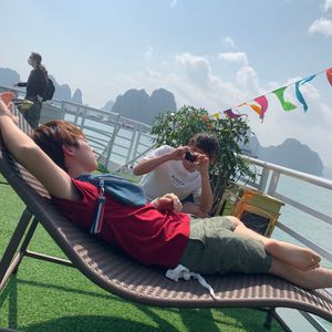 ハノイ3日目にハロン湾でのクルーズを予約していました。近くのホテルでピックアップしてもらい、バスで高速で向かいました。バスはすごく快適で座り心地が良かったので、2時間爆睡できました。お寺など観光地を訪問したのち、クルーズ船に向かいました。ドリンクは持ち込みできず、別料金でしたが、日本と同じくらいの値段だったので問題なしです。お土産などの案内もありましたが断るとすぐに下げてくれたのでストレスはないです。二階には寝椅子があるので、すごく快適でした。鍾乳洞も案内していただき、帰りも高速で快適に帰れました。おすすめします。