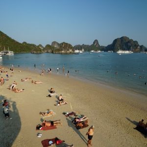 ハノイに観光で来られる方の殆どが参加されるというハロン湾ツアーですが、日帰りではその魅力は堪能できないと思います。と申しますのも、ツアーで訪れる鍾乳洞や浜辺等の観光地自体は、観光客で溢れかえってしまっており、典型的なオーバーツーリズム状態にて全く楽しくないからです。日帰りツアーですと、そうした混雑した観光地しか見れない訳で、ハロン湾の魅力の恐らく1%も堪能出来ないことでしょう。その点、もし船上で1泊されれば、夜と早朝の静かでハロン湾を、船上から体験できます。静かなハロン湾は、水墨画の世界がそのまま広がる感じにて、とても素晴らしいです。当方は、そうした幽玄な水墨画的世界を、船上デッキにて、独り堪能することができ、素晴らしい体験が出来ました。