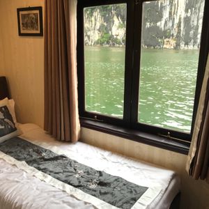 カップル2人で参加しました。前日は嵐で、当日も悪天候という中、船が出航するかどうか心配でしたが、通常どおり運行して良かったです。英語ツアーということで、最初は不安がありましたが、英語ツアーでも全然問題なかったです。英語の壁を感じた場面は、鍾乳洞ツアーぐらいだったと思います。部屋は思っていたより快適に過ごせました。しかし、改善していただきたい3点がございます。①ベットマッドが想像以上に固い②シャワーの温度が冷たいこと③トイレの水の流れがかなり弱かったこと。この3点が改善できたらより満足度もあがると思います。