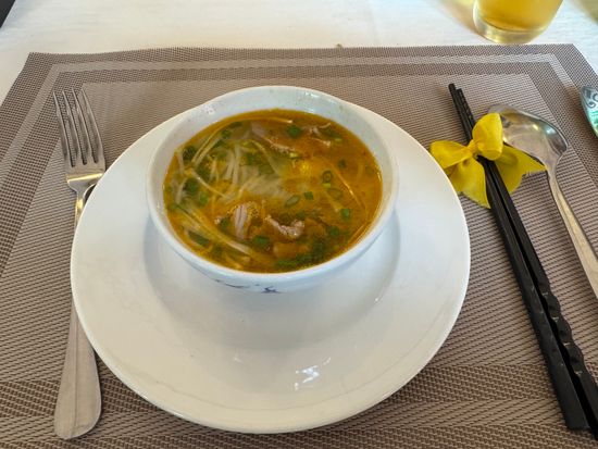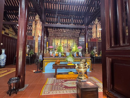 フエ到着後は専用車に乗り換え、まずはグエン朝王宮へ。その圧倒的な広大さと重厚な歴史の重みに言葉を失いました。お昼にいただいたフエ名物料理は、歴史ある趣深い建物の中で提供され、味も雰囲気も格別。視覚も味覚も満たされる贅沢な時間となりました。