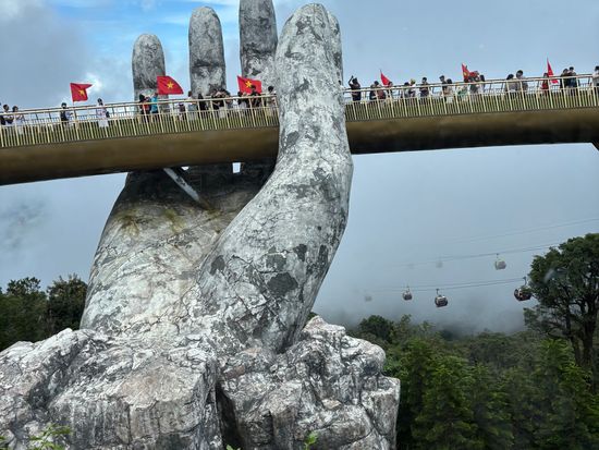 ロープウェイを降りると、まず目に入るSNSで話題沸騰の人気スポット!巨大な橋を大きな手が支えているような光景は「神の手」と呼ばれ親しまれています。