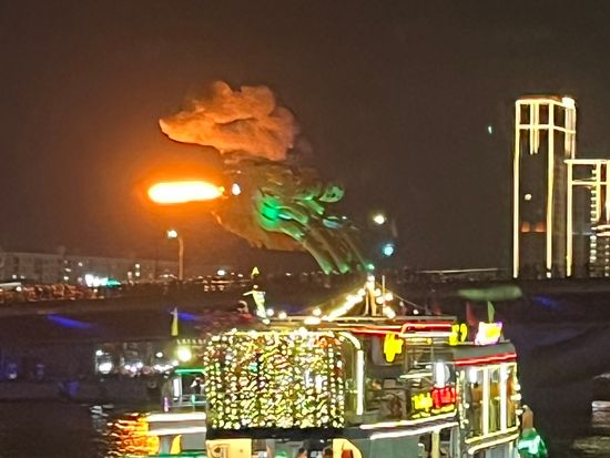 金・土・日のみ、21時頃からドラゴンブリッジ付近で火と水のショーをクルーズ船からご鑑賞いただけます。迫力あるショーをお楽しみください!