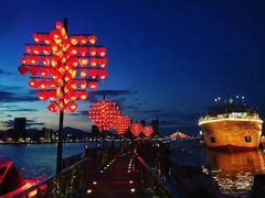 ここはカップルが愛の証として南京錠を掛ける人気スポットです。すぐそばには、ハン川を背景にライトアップされた「鯉が龍へと変わる像(Carp Turning into Dragon)」もあり、幻想的な景色が広がります。