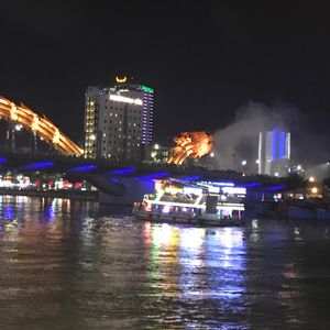 その後船に乗船し、ディナー後、21:00〜ドラゴンブリッジのショーが始まりました。