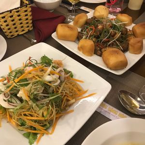 食事は私達だけの2人がけの席でした。あっという間に食事が運ばれ、量はとても多く、2人でお腹一杯になりました。