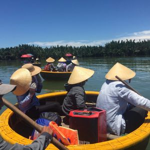 宿泊していたホテルまで迎えにきてもらい、ホイアンの朝市で野菜や果物などを紹介してくれました!そのあとボートに30分ほど乗り、川の上でココナッツボートに乗り換えました。1人10万ドン払って、クルクル回してもらいました。