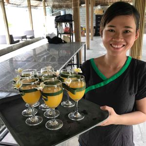 先週、友人たちとツアーを過ごしました。ニュウさんはとても情報豊かで親切なガイドでした。料理の仕方や材料についてよく説明してくれました。とても楽しい料理体験で、美しい料理の盛り付けもありました。特にすべての料理がとても美味しくて素敵でした。旅行の後には、地元の市場やボートトリップ、丸いバンブーボート、ウォーターバッファローのカートに乗ったり、足マッサージを受けたりした素敵な写真がたくさんあります。ツアーを強くお勧めします。ニュウさんとあなたのチームに感謝します。