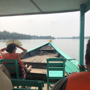 その後、小型のボートで河の河口付近まで30分ほど乗船しました。岸の付近でバスケットボートに乗り換えました。短時間でしたがジャングルクルーズのような雰囲気を楽しめました。上陸後、足のマッサージ、料理教室という流れでした。