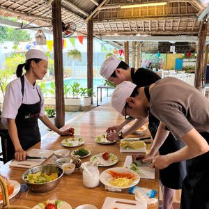 The host of this cooking school is hilarious and had us in stitches of laughter throughout. The dishes we cooked were very tasty and genuine Vietnamese cuisine. We also enjoyed our meal in very pleasant surroundings and was invited to use their swimming pool, as an added bonus.
