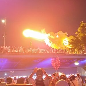ツアー案内にもある通りドラゴンブリッジの演出は金土日だけです。