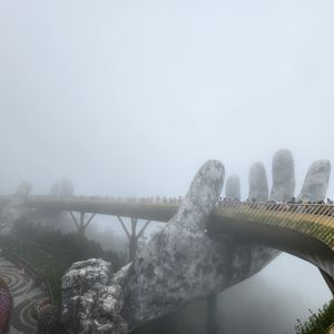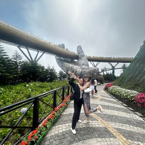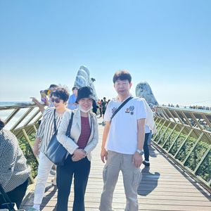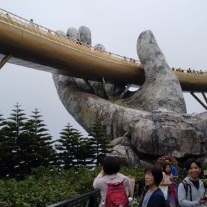 ロープウェイの道中は濃霧で心配しておりましたが、日本語堪能なフォンさんが「太陽見えているので、神の手、見れると思いますよ~」と教えてくださった30秒後くらいに、ゴールデンブリッジが本当に目の前に現れました。