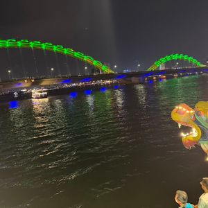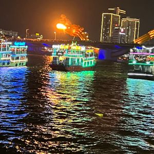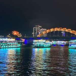 ダナンとホイアンの中間地点のリゾートに宿泊していたので、ドラゴンが火を噴く9時にGrabで橋の袂に行くのは面倒と思い、現地で本ツアーを予約いたしました。宿泊先へのピックアップも15分前で、常に時間に余裕を持った移動に好感が持てました。最初にナイトマーケットの散策時間がありました。移動する先々にドライバーが車を回しており、何かを「待つ時間」が全くなく、非常に効率的で「段取りの良い」ツアーでした。船内での滞在時間などは短め伝え、実際にはそれより長くなりました。常に期待より、実際が上回るようなコミュニケーションをするガイドさんで、まさにUnder commit, Over deliver の好例のようなツアーでした。