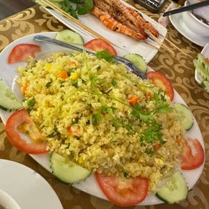 その後、船に乗るとすぐに食事が始まりました。食事はスープやお肉、エビ焼き、チャーハン、果物など充実しており、女性二人では食べきれないほど十分な量でした。飲み物代のみ、その場で支払いました。