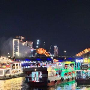 21時過ぎからドラゴンブリッジの火と水のショーが始まりましたが、ハン川両岸の公園やブリッジの上は観客でごった返しており、船からストレスなくゆっくり観覧できたのはとてもよかったです。