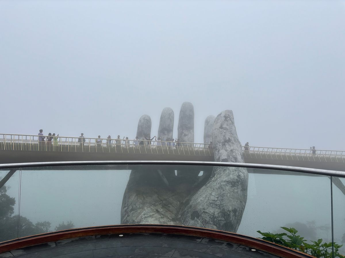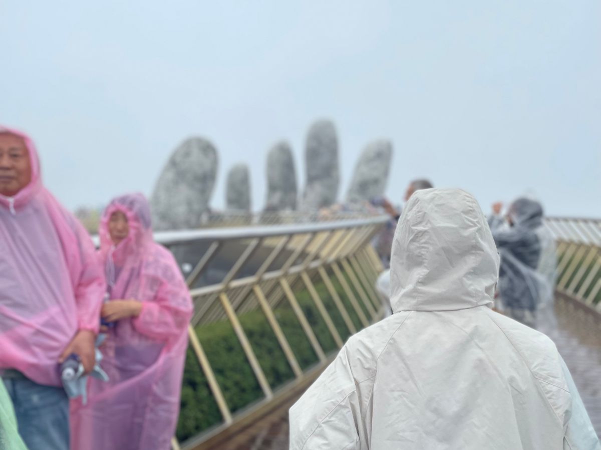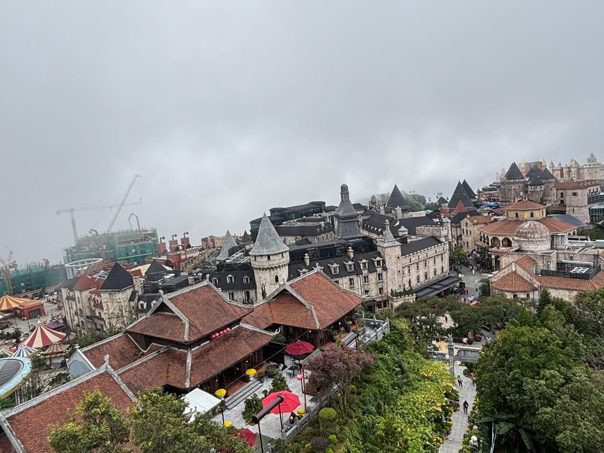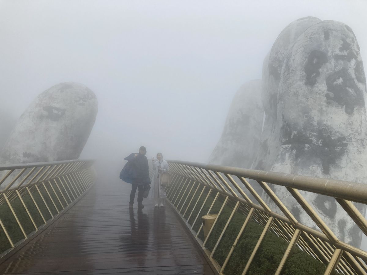 当日、ハノイからダナンへ移動したので、夕方入場プランを申し込んだのですが、テーマパーク内の全アトラクションは終了していました。なので、濃い霧の中を世界最長のロープウェイで上まで登り、ゴールデン・ブリッジで写真を撮ったり、フレンチ・ヴィラを散策しました。自己都合なので仕方ありません。