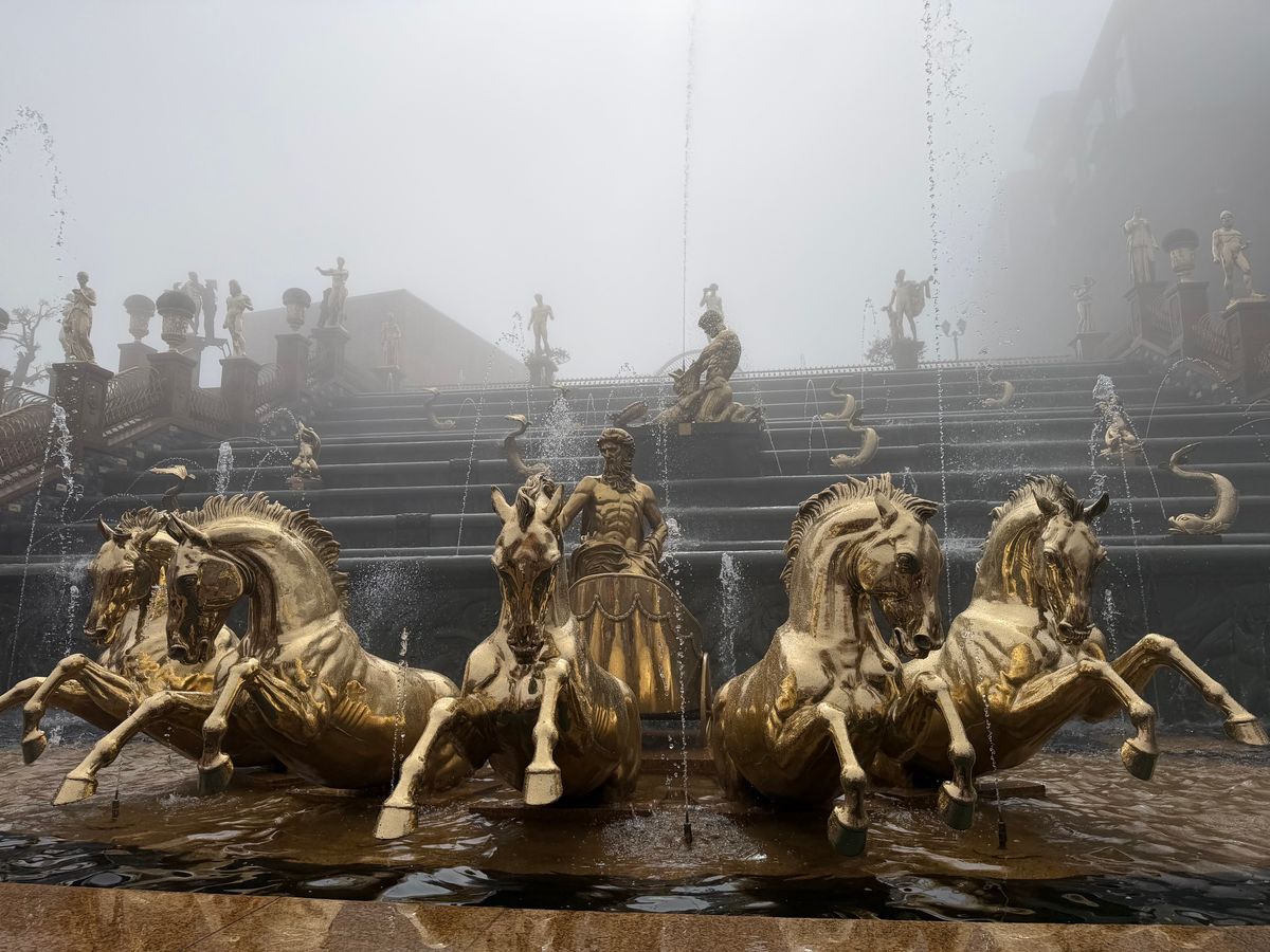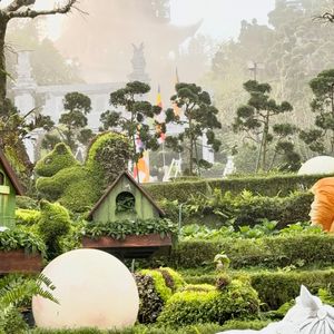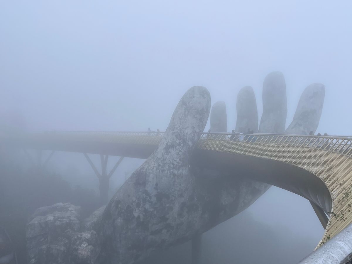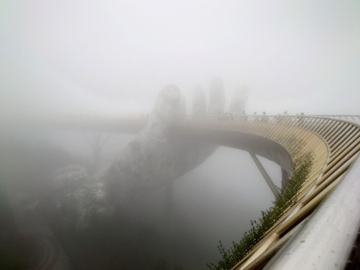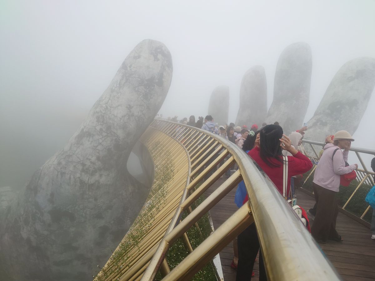 当日、ハノイからダナンへ移動したので、夕方入場プランを申し込んだのですが、テーマパーク内の全アトラクションは終了していました。なので、濃い霧の中を世界最長のロープウェイで上まで登り、ゴールデン・ブリッジで写真を撮ったり、フレンチ・ヴィラを散策しました。自己都合なので仕方ありません。