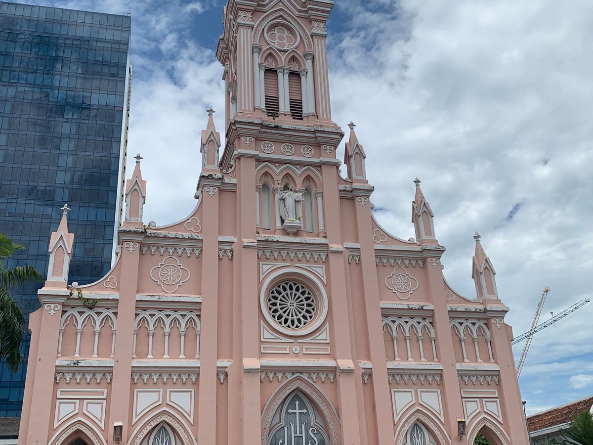 ダナン大聖堂までの道を教えてくれ、レストラン入口で記念のツーショット写真を撮らせてもらい
