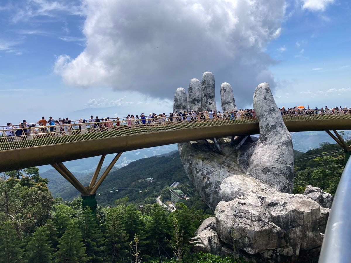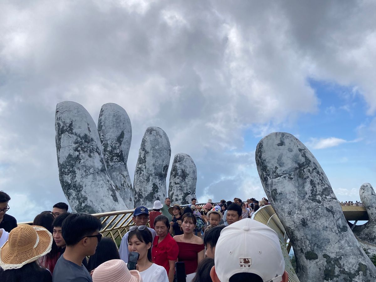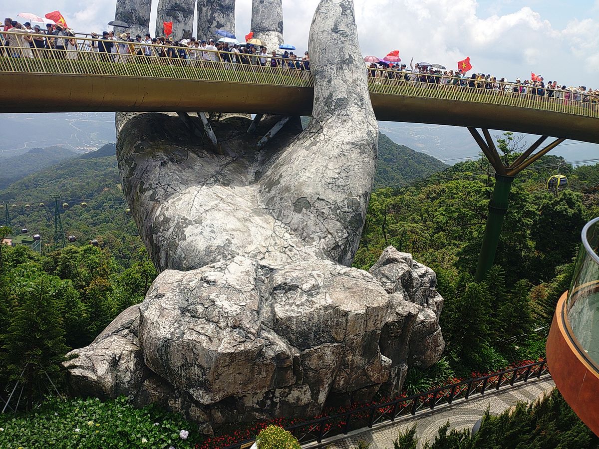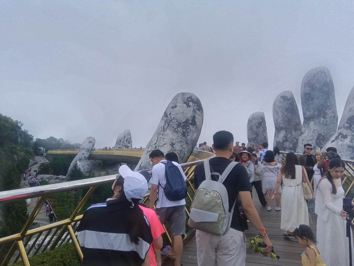 7:30にピックアップ。私達だけ参加のツアーです。長いロープウェイにはハノイの可愛い家族と私達とガイドさん。ダナンの方とハノイの方とではチケットの値段が違うようです。勿論外国人が1番高いらしいがこれは当たり前です。写真見て頂ければわかりますが、紙の手も空いてて気持ちが良かったし、花が綺麗な場所も空いててとても綺麗でした。ガイドさんが順次良く案内してくれます。フランスエリアは自由行動です。ランチは美味しいのを探すのが大変でした。ランチ無しにしてほしい。小地ビール2杯他の建物でもらえます。