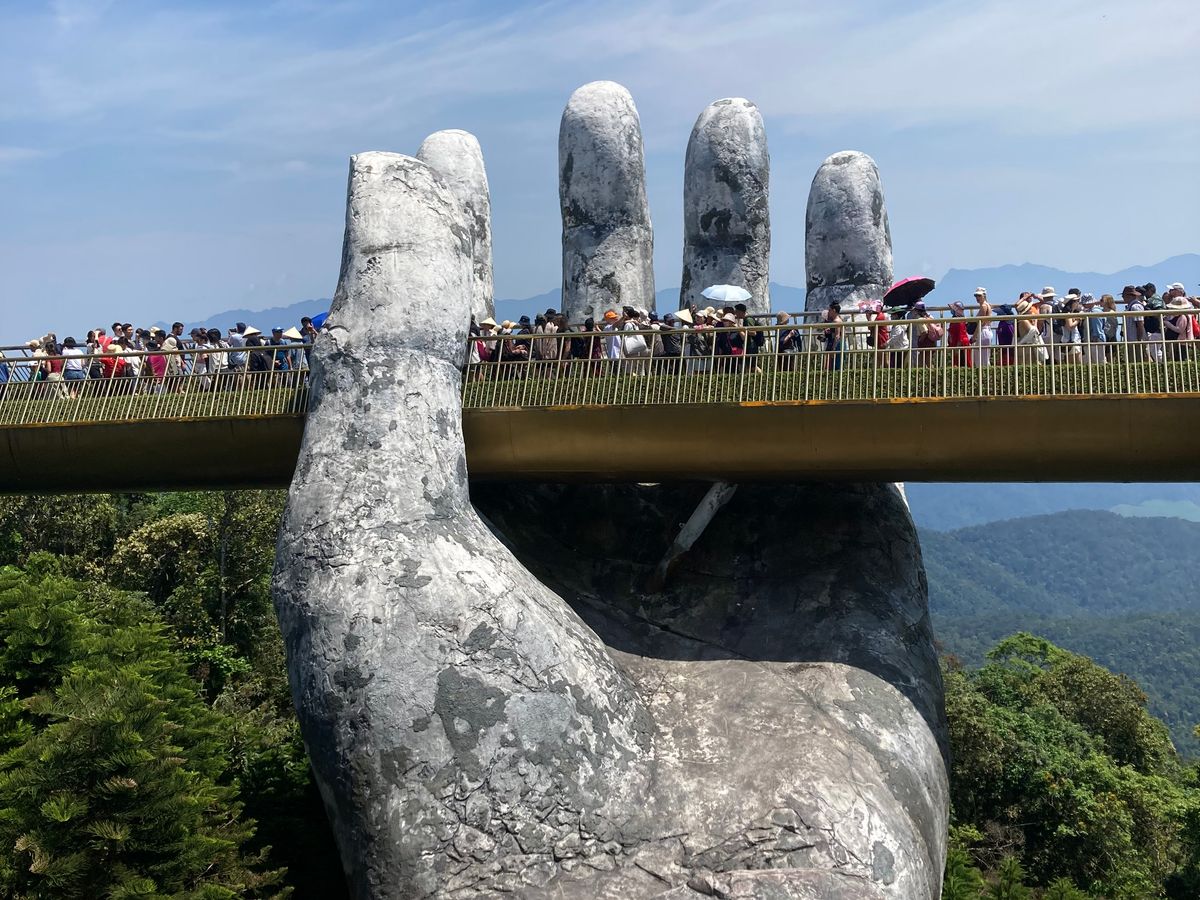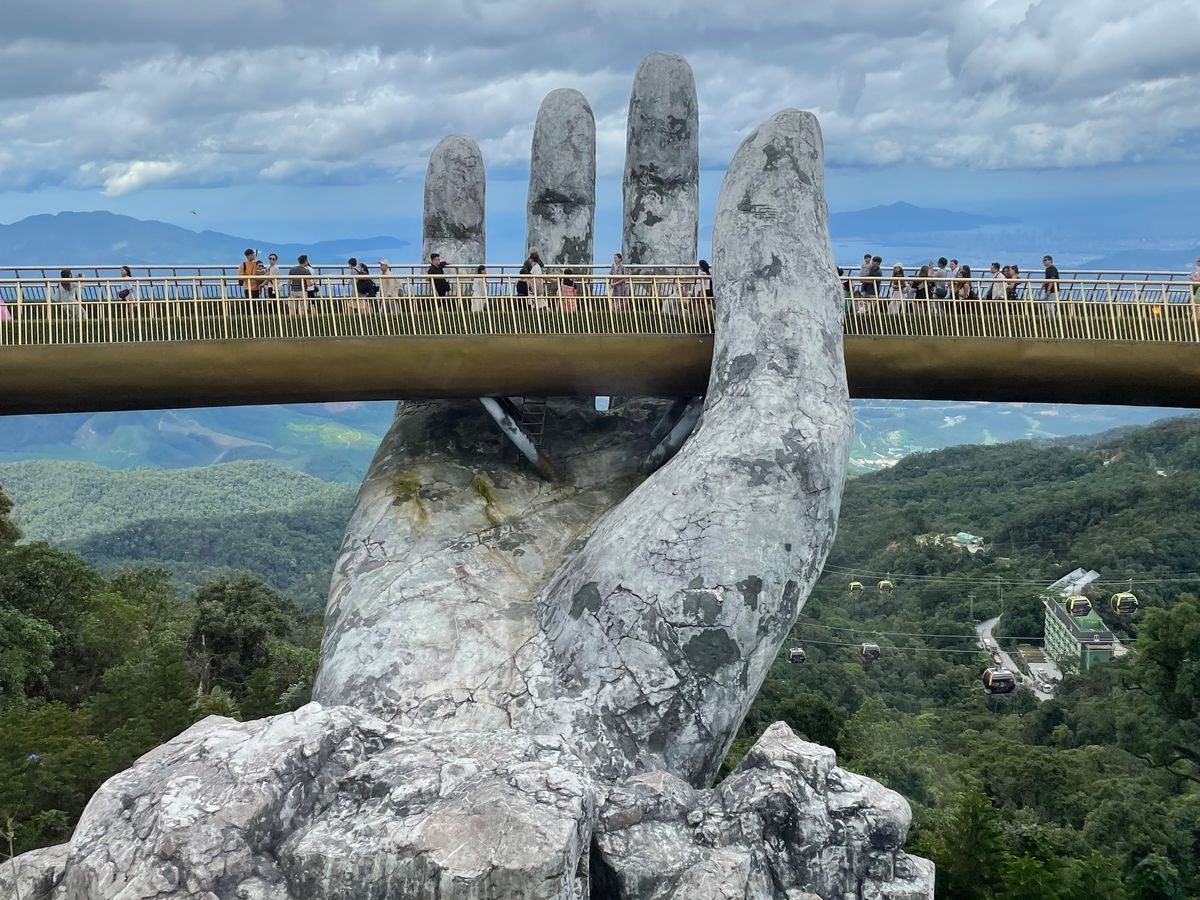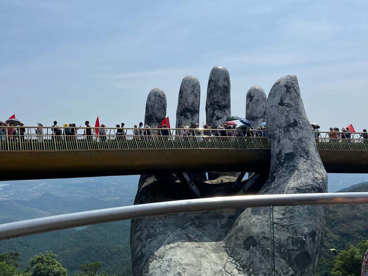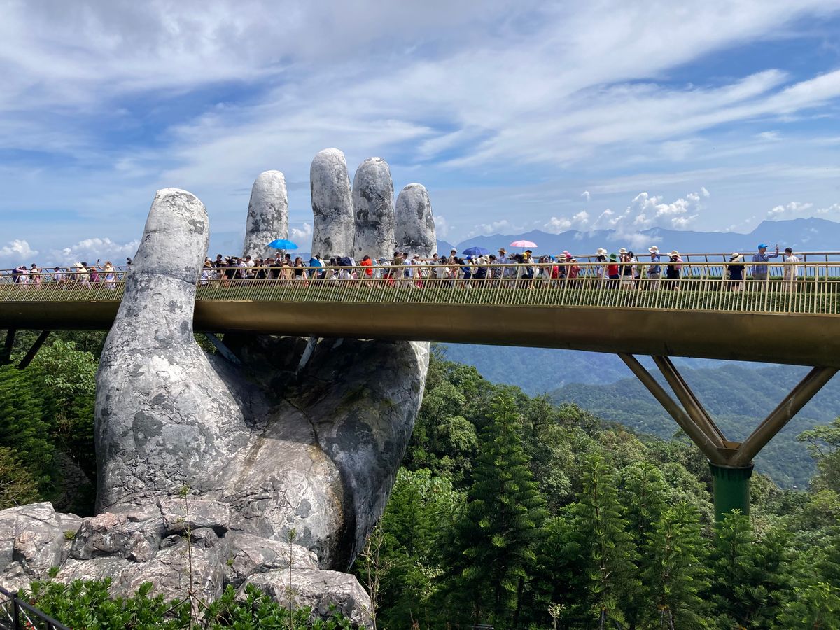 7:30にピックアップ。私達だけ参加のツアーです。長いロープウェイにはハノイの可愛い家族と私達とガイドさん。ダナンの方とハノイの方とではチケットの値段が違うようです。勿論外国人が1番高いらしいがこれは当たり前です。写真見て頂ければわかりますが、紙の手も空いてて気持ちが良かったし、花が綺麗な場所も空いててとても綺麗でした。ガイドさんが順次良く案内してくれます。フランスエリアは自由行動です。ランチは美味しいのを探すのが大変でした。ランチ無しにしてほしい。小地ビール2杯他の建物でもらえます。